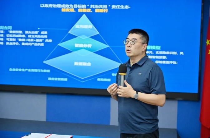 在详细介绍完公司各项业务后,副总裁岳明为各位来宾分享了“AI+数字化安全生产事故预防解决方案”。通过钉钉平台,将政府、企业、保险公司及专家的协作链路打通,实现线上安全生产事故预防服务的标准化和效率提升。岳明表示,通过对海量风险数据的积累及深度学习,未来AI将在安全生产领域发挥智能决策支持的作用,从而提高监管效率,实现集监管、服务和治理为一体的智能平台,对促进全省行业应用起到推动作用。